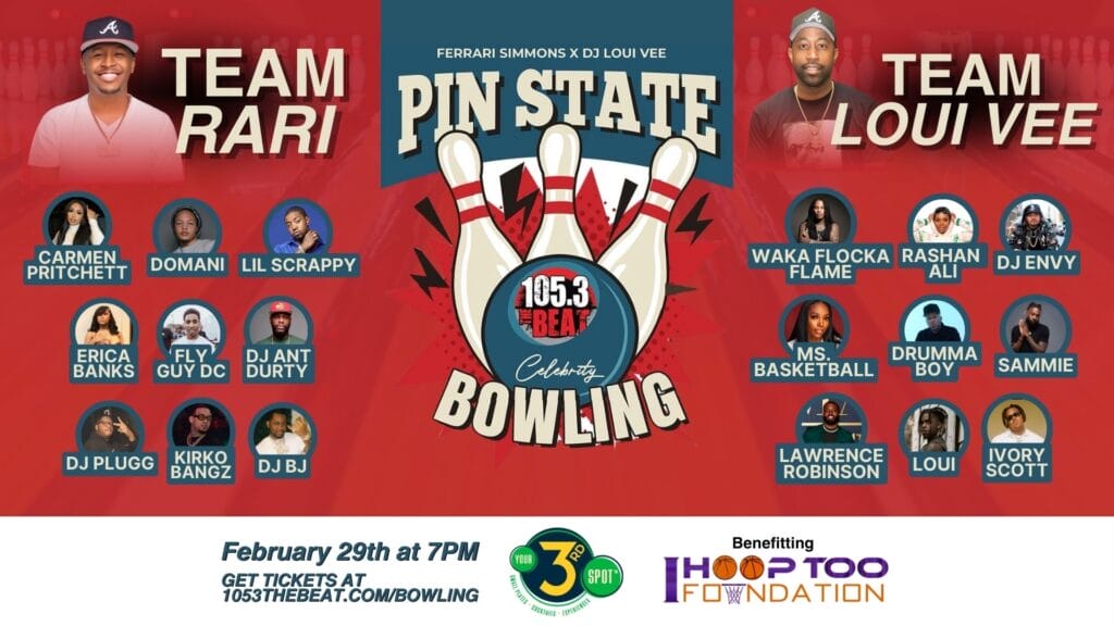 Excitement is rolling in as The Georgia Hemp Co. proudly sponsors an event that’s set to strike a perfect balance between entertainment and philanthropy. Get ready to lace up your bowling shoes for the first-ever Pinn State Celebrity Bowling Tournament, brought to you in partnership with 105.3 the Beat. This thrilling face-off, featuring none other than Ferrari Simmons and DJ Loui Vee, will take place on the leap day of February 29th at Your 3rd Spot. It’s not just a game; it’s a gathering of hearts and talents, all bowling for a commendable cause.