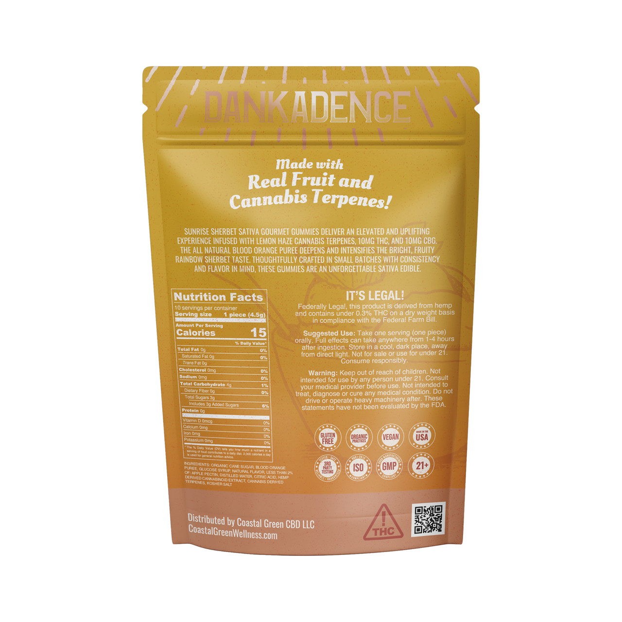 Dankadence 10mg THC Sativa Sunrise Sherbet Gourmet Gummies