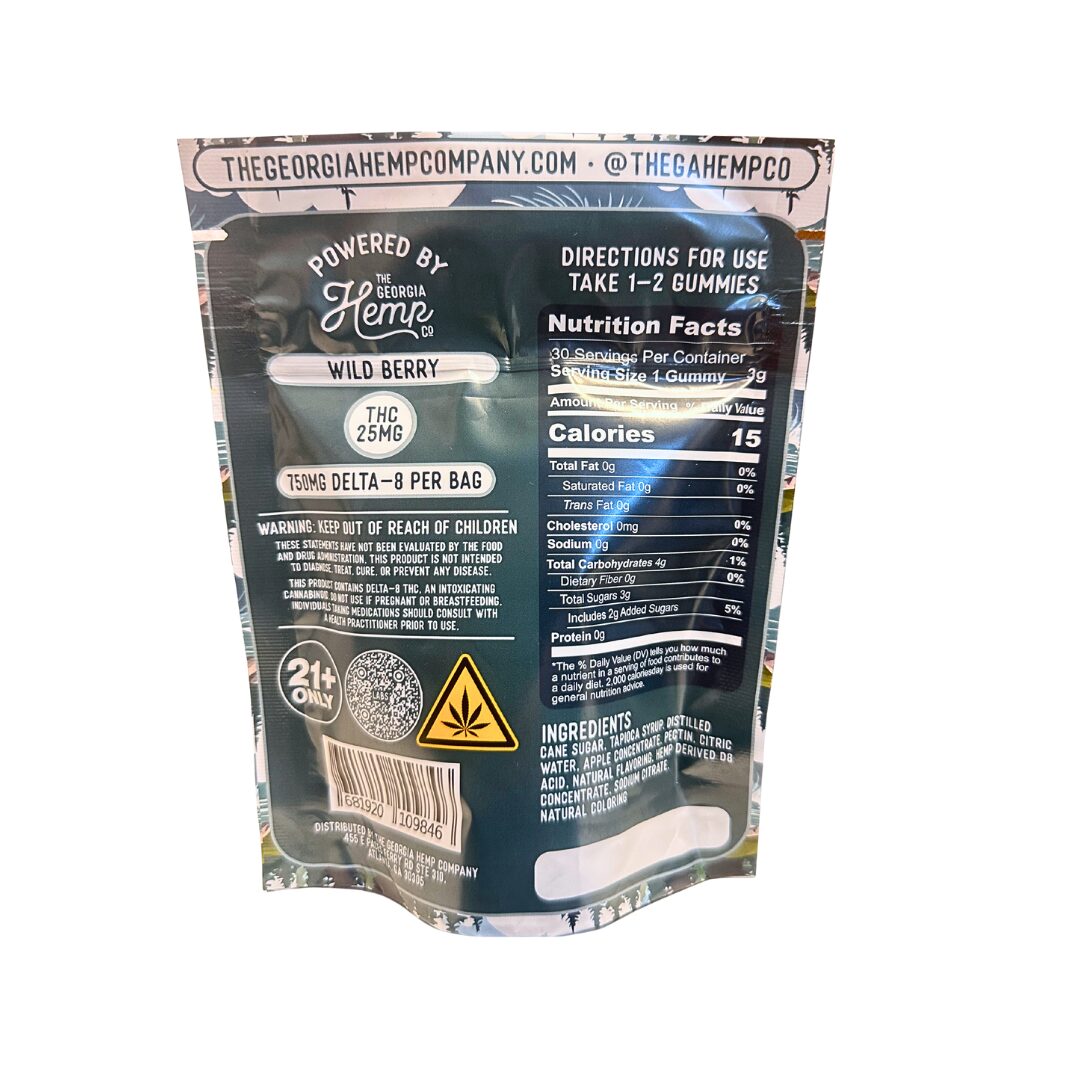 Cannabinoids per Gummy: 25mg Delta 8 THC