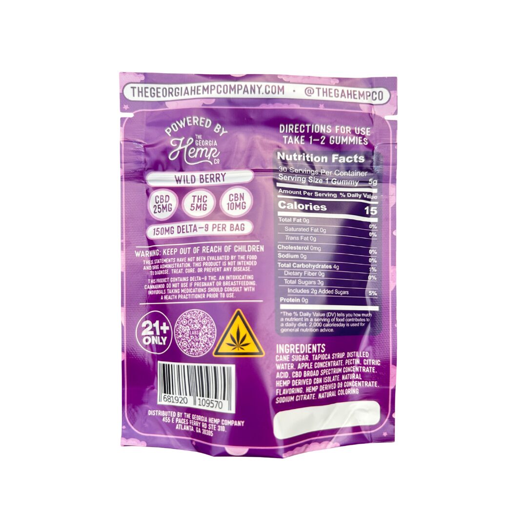 Cannabinoids per Gummy: 25mg CBD • 5mg THC • 10mg CBN