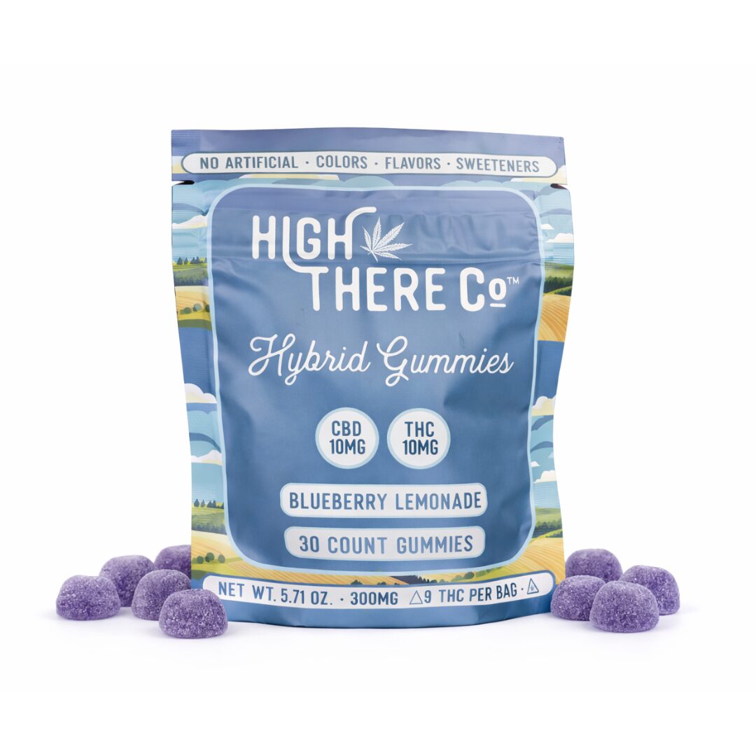 High There Co™ Hybrid Gummies • 10mg CBD + 10mg THC • Blueberry Lemonade • 30ct