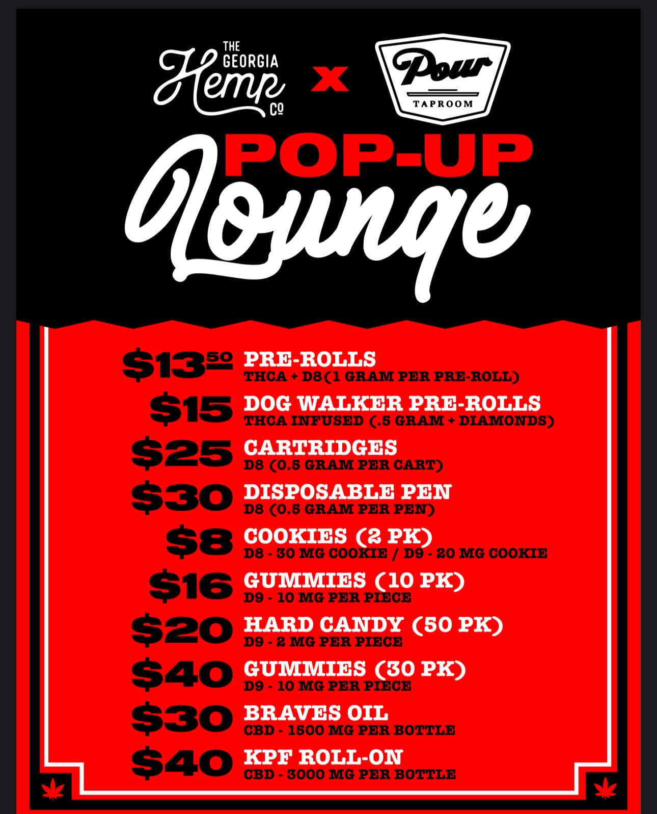 Whether you’re looking to explore new flavors or seeking a relaxing alternative to traditional beverages, The Georgia Hemp Company™ pop-up at Pour Taproom is the place to be. Our products promise not only great taste but also a calming, enjoyable experience.