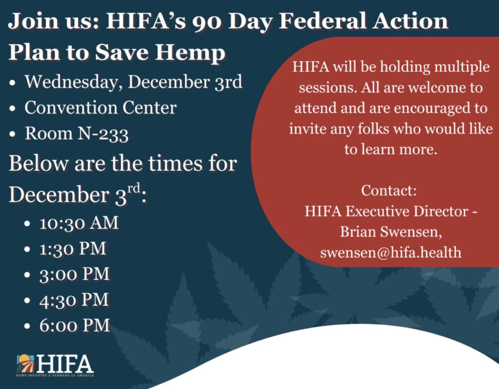 If you’re in Las Vegas, stop by and say hello! HIFA will be at MJBizCon today—we’d love to connect in person, answer questions, and equip you with advocacy tools.